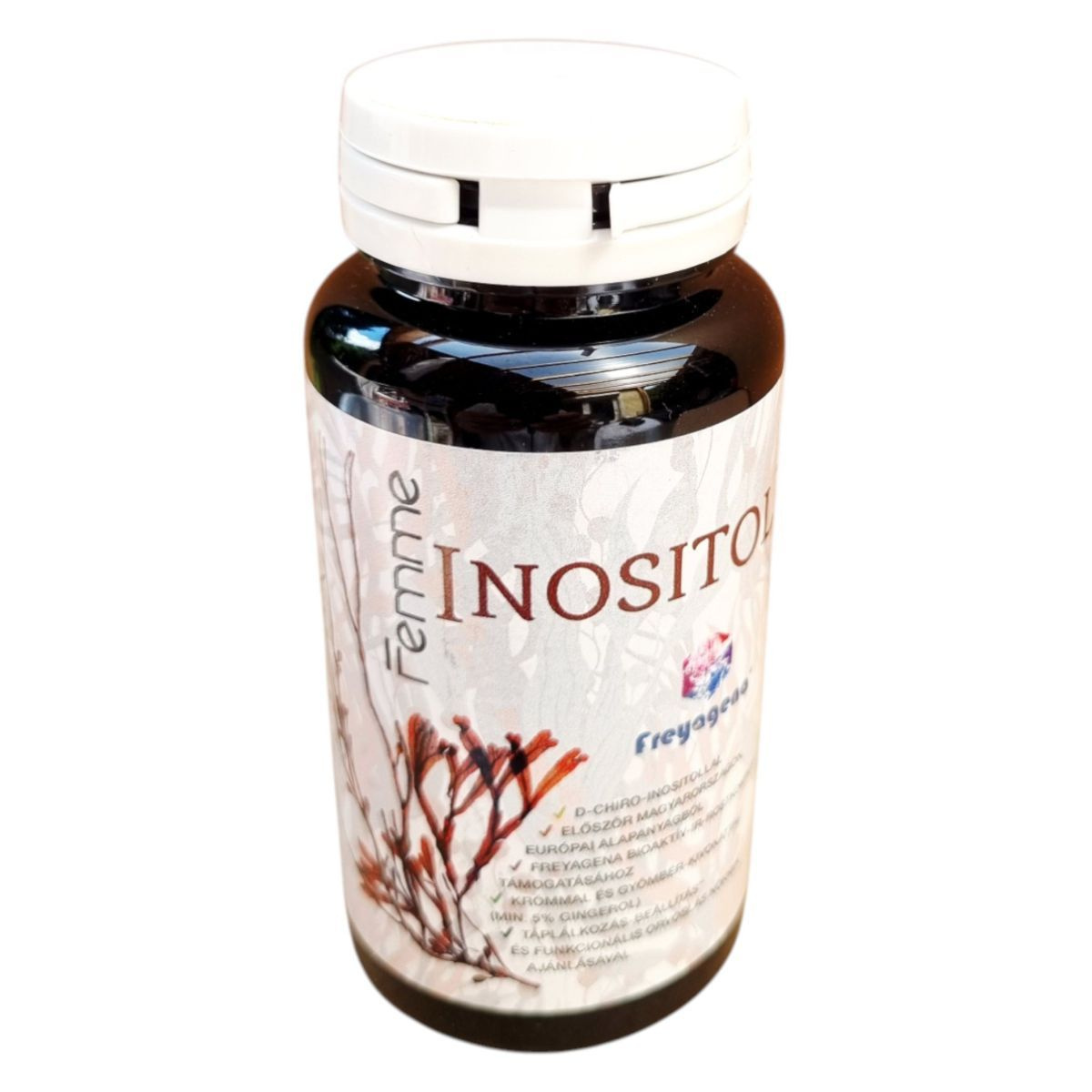 A Freyagena Femme INOSITOL+ étrend-kiegészítő Magyarországon fejlesztett és gyártott termék, amely D-chiro-inositolt, gyömbér-kivonatot és krómot tartalmazhat. A termék célja, hogy támogassa a táplálkozás-beállítást és a funkcionális orvosi ajánlásokat. A gyömbér-kivonat legalább 5% gingerolt tartalmazhat, amely hozzájárulhat a termék hatékonyságához. A termék kizárólagos forgalmazója a Nutribalance Kft., amely Budapesten található.