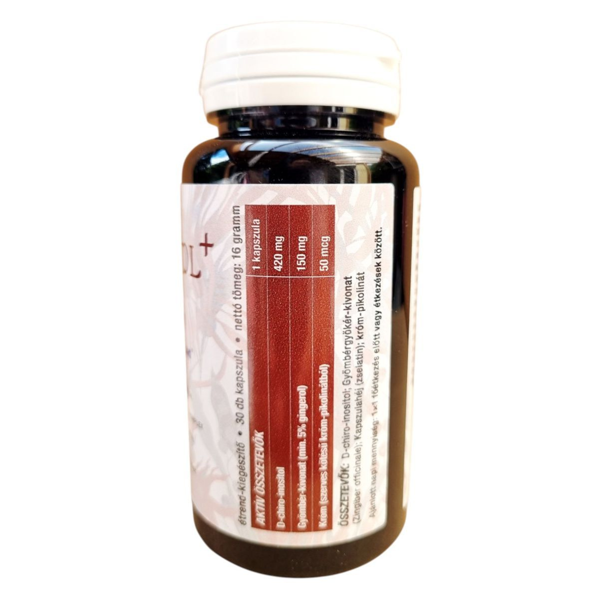 D-chiro-inositol, gyömbérgyökér-kivonat, zselatin, króm-pikolinát.