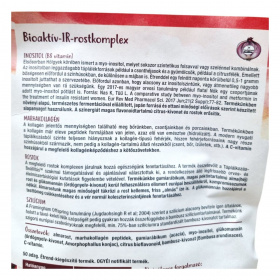 A Bioaktív-IR rostkomplex hozzájárulhat a normál vércukorszint fenntartásához, valamint támogathatja a haj és kötőszövetek épségét. A termék inositolt, bioflavonoidokat, növényi szilíciumot, kollagént és C-vitamint tartalmazhat.