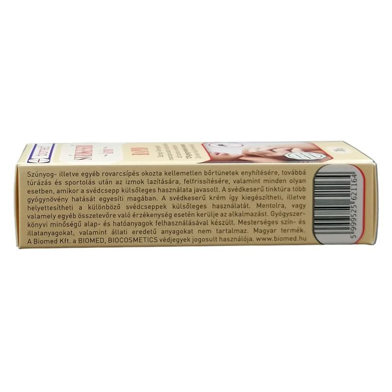 Szúnyog- illetve egyéb rovarcsípés okozta kellemetlen bőrtünetek enyhítésére, gyorsan hűsítő mentollal. Alkalmazható továbbá minden olyan esetben, amikor a svédcsepp külsőleges használata javasolt. Fontos, hogy az első alkalmazás a csípés után minél hamarabb, lehetőleg 15 percen belül történjen! Hatóanyagai: 12% gyógynövény kivonat (svédkeserű tinktúra), mentol.