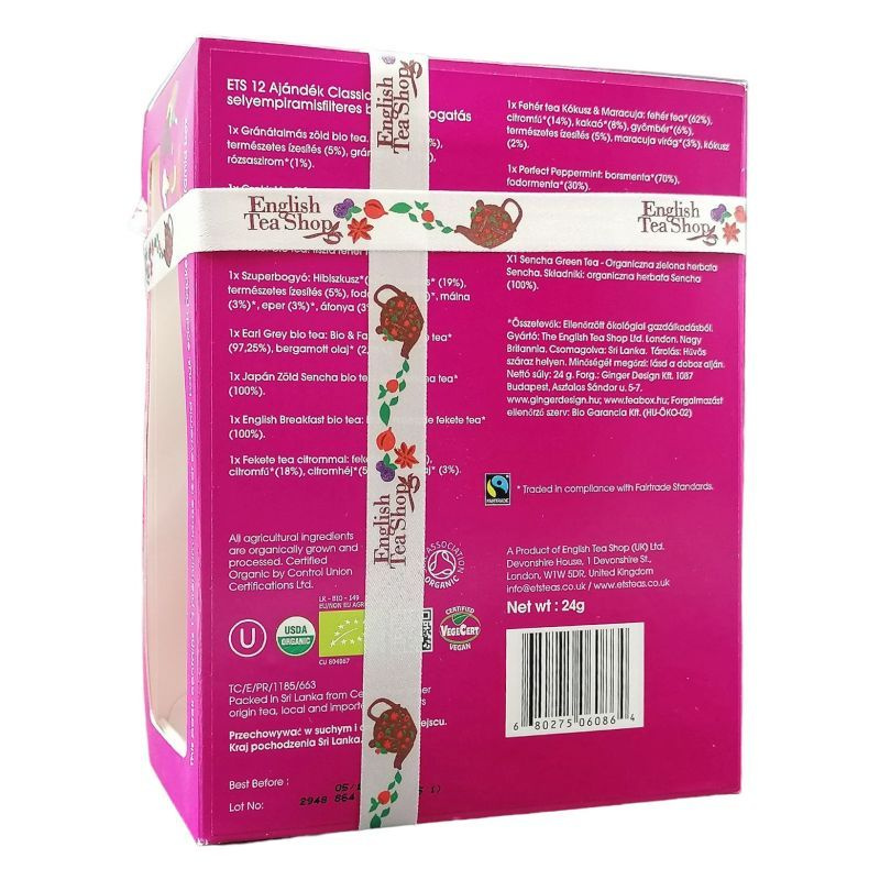 Ets 12 ajándék classic selyempiramis filteres bio teaválogatás - 12 db selyempiramis teafilter. (12 íz)