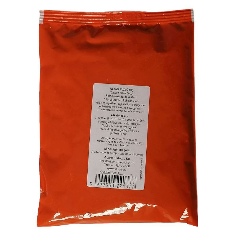 Az izlandi zuzmó (Cetraria islandica) egy zuzmófaj, amely nyálkaanyagokban (lichenin, izolichenin), keserűanyagokban és más bioaktív komponensekben gazdag természetes alapanyag. Vízben oldódó poliszacharidjai bevonó, nyálkahártya-védő hatást fejthetnek ki, amely támogathatja a felső légutak és a gyomor-bélrendszer fiziológiás működését. A keserűanyagok hozzájárulhatnak az emésztőnedvek elválasztásának serkentéséhez, ezáltal segíthetik az emésztési komfort fenntartását. Hagyományosan torokirritáció és száraz köhögés esetén alkalmazzák. Megfelelő mennyiségben általában biztonságosnak tekinthető, azonban az alkalmazás dózis- és egyéni érzékenységfüggő lehet. Egyéni egészségügyi állapot vagy gyógyszerszedés esetén javasolt szakemberrel konzultálni.