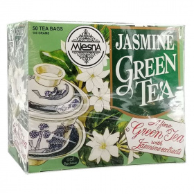 Filteres zöld tea aromazáró fóliazacskóba csomagolva. Összetevők: zöld tea, jázmin aroma.