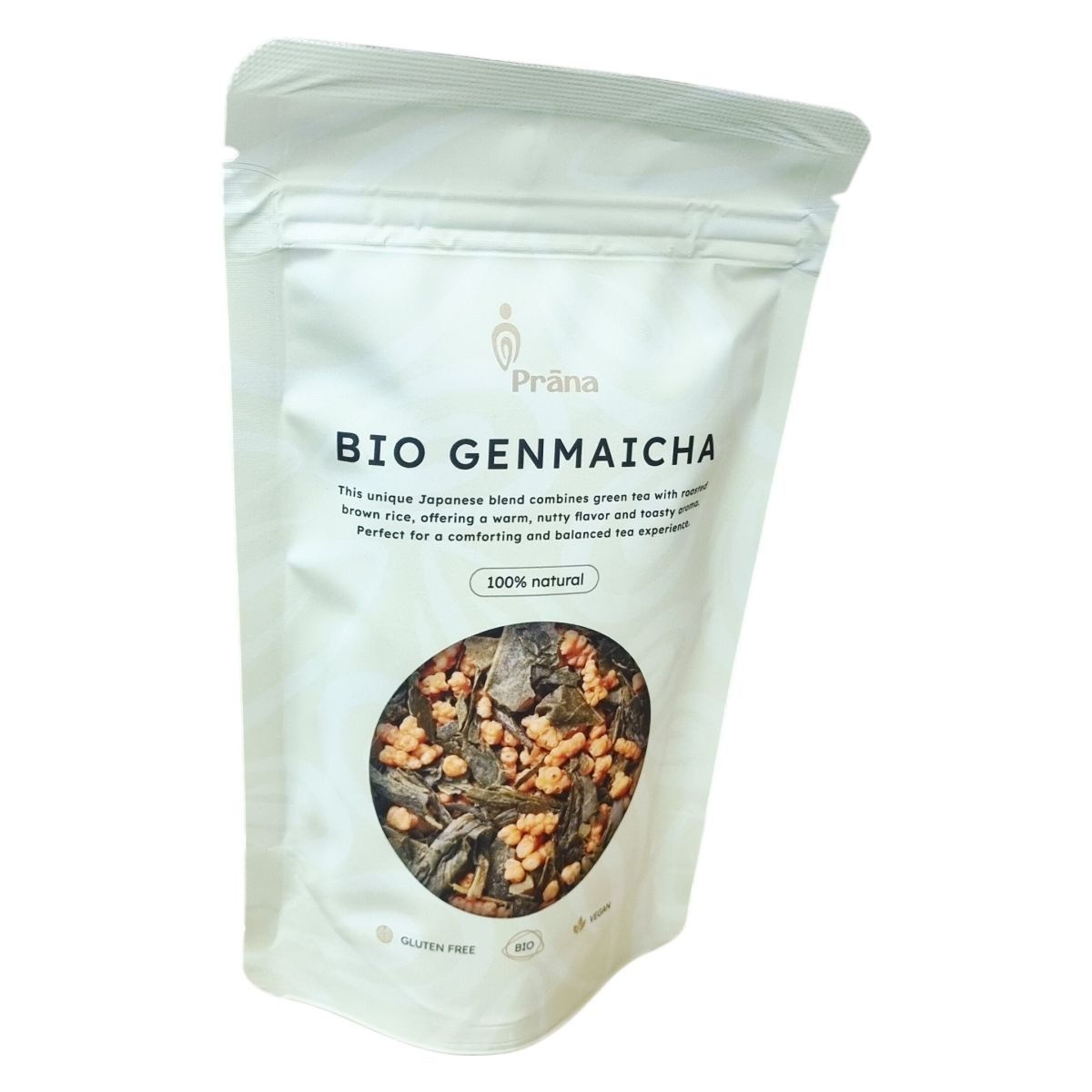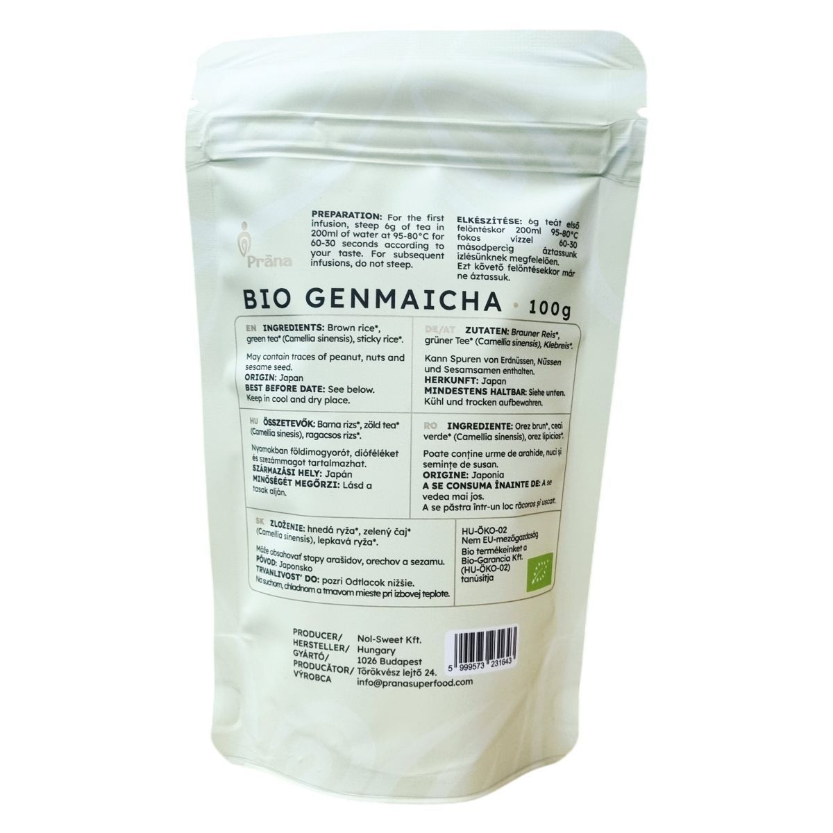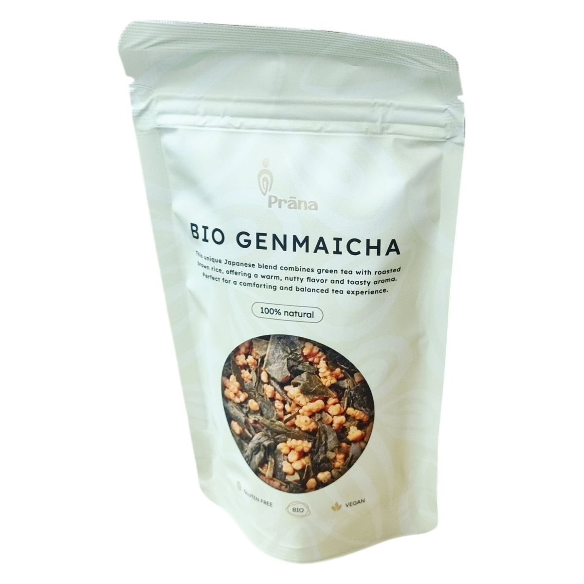 A Prána Bio Genmaicha egy 100% természetes, japán eredetű tea, amely barna rizs és zöld tea kombinációjából készül. A termék bio minősítéssel rendelkezik, melyet a Bio-Garancia Kft. tanúsít. A tea gluténmentes és vegán étrendbe is beilleszthető. Az összetevők között megtalálható a ragacsos rizs is. A csomagoláson feltüntetett felhasználási útmutató szerint az első áztatásnál 6 g teát ajánlott 200 ml vízben, 95-80°C-on, 30-60 másodpercig áztatni ízlés szerint, ezt követően a további felöntéseknél a teát nem kell áztatni.