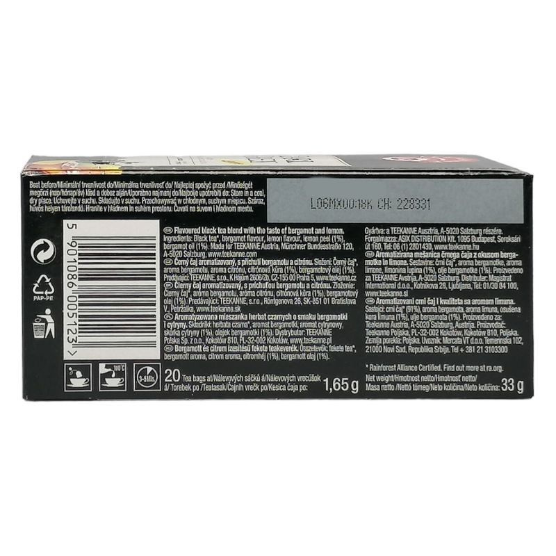 A Teekanne Earl Grey lemon fekete tea egy különleges ízélményt kínál a tea szerelmeseinek. Ez a prémium minőségű fekete tea a klasszikus Earl Grey ízvilágát ötvözi a friss citrom aromájával, így egy igazán üdítő és élénkítő italt kapunk. A tea alapját képező fekete tea levelek gondosan válogatott, magas minőségű alapanyagokból készülnek, amelyek gazdag ízvilágukkal és aromáikkal minden kortyban elvarázsolják a fogyasztót. A citrom frissítő íze nemcsak a tea ízét emeli ki, hanem egyben kellemesen felfrissít, így ideális választás lehet a nap bármely szakában. A 20 filteres kiszerelés lehetővé teszi, hogy mindig kéznél legyen ez a különleges tea, legyen szó reggeli ébredésről, délutáni pihenésről vagy akár egy baráti összejövetelről.