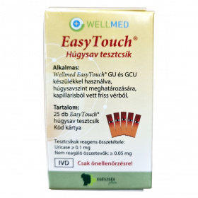 Az EasyTouch húgysav tesztcsík Wellmed márkanév alatt forgalmazott, önellenőrzésre szolgáló in vitro diagnosztikai eszköz. A termék 25 db EasyTouch húgysav tesztcsíkot és egy kód kártyát tartalmaz.