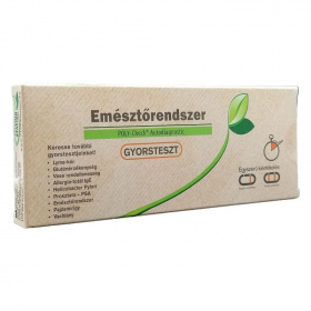 Az alábbi betegségekre utaló tünetet érzékeli a gyorsteszt, mint: vastagbélgyulladás, fekélyek, polip, végbélrepedés, vastagbélrák, vagy szájüregi vérzés. A gyorsteszt a székletvér önellenőrzésére kifejlesztett immunológiai teszt. A teszt elvégzése előtt nincs szükség speciális étrend betartására. A megbízható eredmény érdekében a székletminta gyűjtése 3 egymást követő napon történik. Melyek a teszt előnyei? egyszerű használat, diszkréten, otthon elvégezhető, megbízható eredmény 3 székletmintából, 93%-os pontosság, a teszt elvégzése előtt nincs szükség speciális étrend betartására. Rendelje meg az Emésztőrendszeri tesztet, és tesztelje emésztőrendszerét kényelmesen, otthonában. Ne feledje, minél előbb derül fény egy esetleges betegségre, annál hamarabb csökkenhetnek a kellemetlen tünetek, és annál nagyobb a valószínűsége, hogy nem alakulnak ki komolyabb szövődmények! Kinek ajánlott elvégezni a tesztet? 45-50 éves kor felett mindenkinek, emésztőrendszeri panaszokkal küzdőknek (pl. székrekedés, hasmenés, puffadás), azoknak akik, visszatérő hasi fájdalmat, hasi görcsöket tapasztalnak, azoknak, akiknek megváltozik a székelési szokása, azoknak, akik szokatlan, látszólag ok nélküli fogyást észlelnek, dohányzóknak, rendszeres alkoholfogyasztóknak, azoknak, akiknek a családjában már fordult elő vastagbél-, gyomorrák. Milyen betegségeket jelezhet a véres széklet? Vastagbélrák, gyomor-, nyombélfekély, gyomorhurut, vastagbél polip, fekélyes vastagbélgyulladás (colitis ulcerosa), végbélrepedés, aranyér, Crohn betegség. Mit tartalmaz a teszt? A doboz a teszt elvégzéséhez szükséges összes eszközt tartalmazza, mint: 1 db lezárt alumínium tasak, tartalma: tesztkazetta, páraelszívó párna. A dobozban található még: 3 db papírszalag a székletminta gyűjtéséhez, 1 db 2 ml oldatot tartalmazó mintagyűjtő cső védőzacskóban, 1 db használati utasítás. Az alumínium tasakot csak akkor nyissa fel, ha mindent előkészített a teszt elvégzéséhez, és a 3 napi székletminta a rendelkezésére áll. A páraelszívó párna nem vesz részt a tesztelési folyamatban!