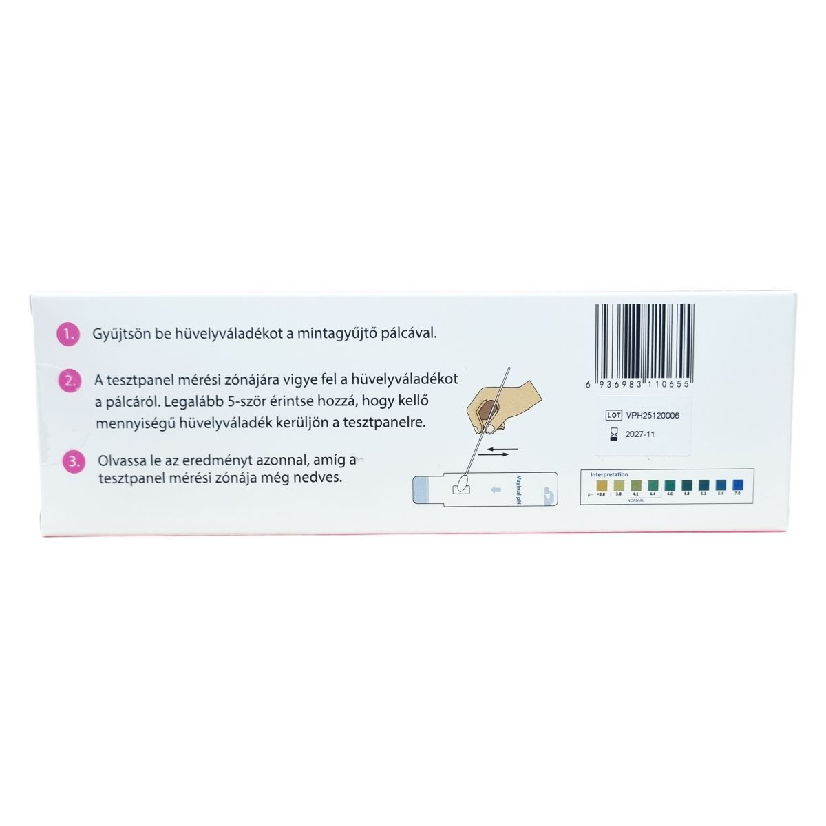 A doboz tartalma: 1 db tesztpanel, 1 db steril mintagyűjtő pálca, 1 db használati utasítás. A termék önellenőrzésre készült, otthoni alkalmazásra. A vizsgálat során a pH értékek széles skálán mérhetők, lehetővé téve a normál értékek felismerését. A gyártó a Hangzhou AllTest Biotech Co., Ltd. Kínában található. Az európai képviselet a MedNet EC-REP GmbH, Németországban működik.