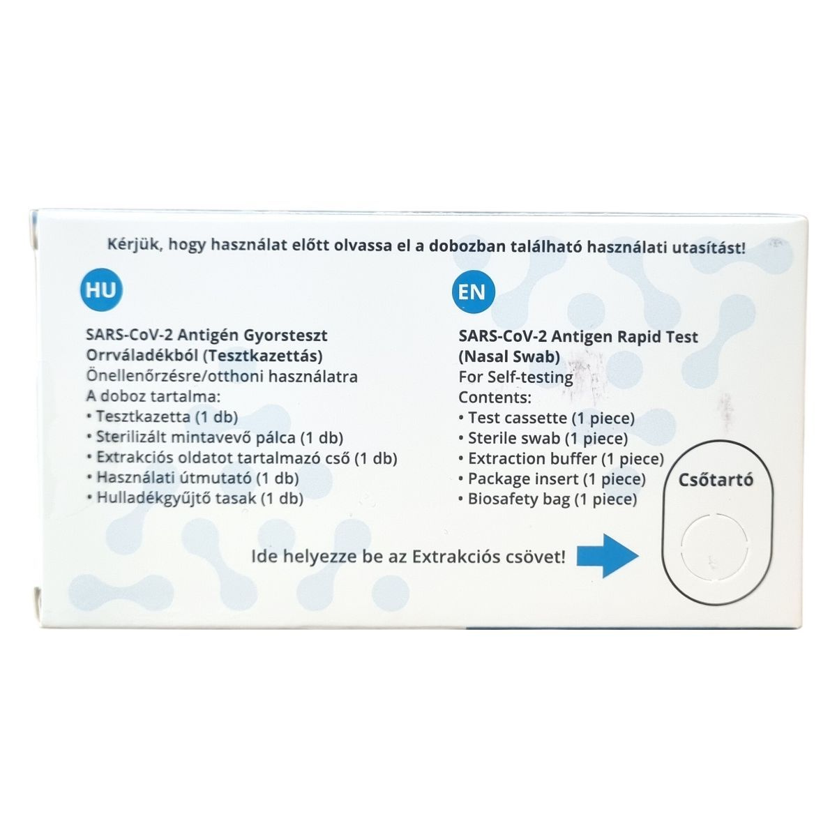 Ez a SARS-CoV-2 antigén gyorsteszt gyors és megbízható otthoni önellenőrzésre szolgál, orrjáratból vett mintából dolgozik.