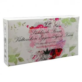 A betét felépítése: a betét tisztított gyapotból készült, 100% pamut. Felépítése: mikroszálas fedőréteg, gyógynövények, nedvességzáró réteg. A doboz 4 db, egyenként külön csomagolt, fóliával higiénikusan lezárt betétet tartalmaz.