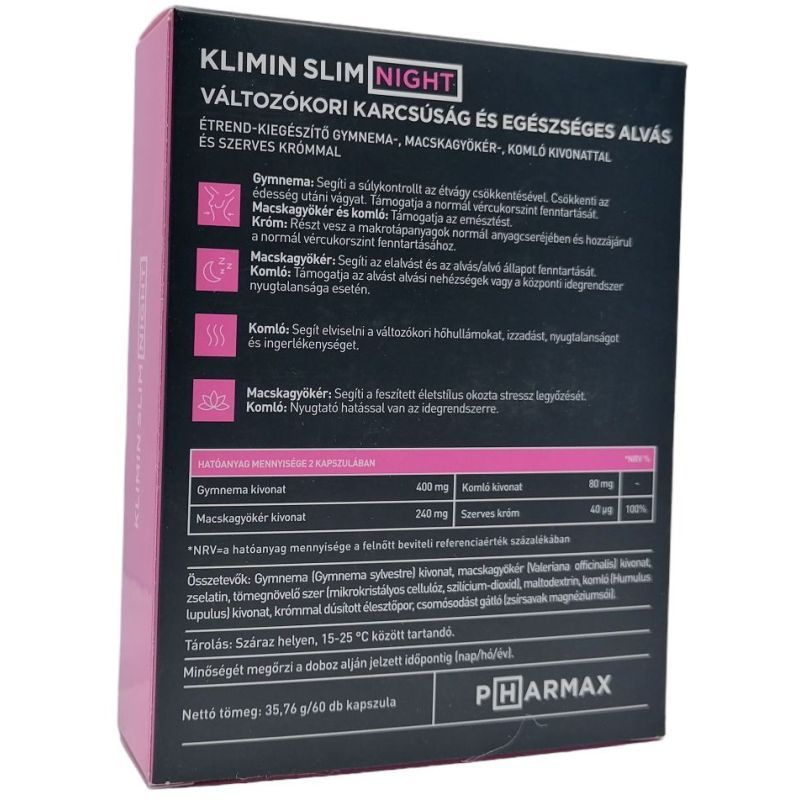 Megérkezett az új Klimin Slim Night, az éjszakai súlycsökkentő kapszula, a jól ismert Klimin Slim termékcsalád legújabb tagja, amely a változókori karcsúság mellett a nyugodt, pihentető alvásról is gondoskodik. A komló támogatja az alvást alvási nehézségek vagy a központi idegrendszer nyugtalansága esetén.