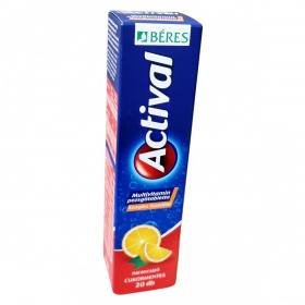 Az Actival multivitamin pezsgőtabletta narancsízű, cukormentes készítmény, amely komplex összetételének köszönhetően különféle vitaminokat, ásványi anyagokat és nyomelemeket tartalmaz. Támogathatja az immunrendszer működését, hozzájárulhat a normál szellemi működés fenntartásához és a megfelelő mentális teljesítményhez, továbbá segítheti a fáradtság csökkentését és az energia-anyagcsere folyamatait. Összetevői között szerepelnek többek között B-vitaminok, C- és D3-vitamin, vas, cink, magnézium, jód és szelén. Az aktív hatóanyagokat egy pohár vízben oldva ajánlott fogyasztani. A termék természetes aromát tartalmaz, és egy doboz 20 pezsgőtablettát foglal magában.