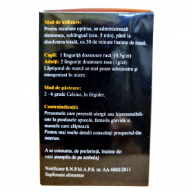 Ajánlott mennyiség:Gyermekek: 1 teáskanál (0,5g/nap)Felnőttek: 2 teáskanál (1g/nap)Sublingualisan, reggel, étkezés előtt 30 perccel.