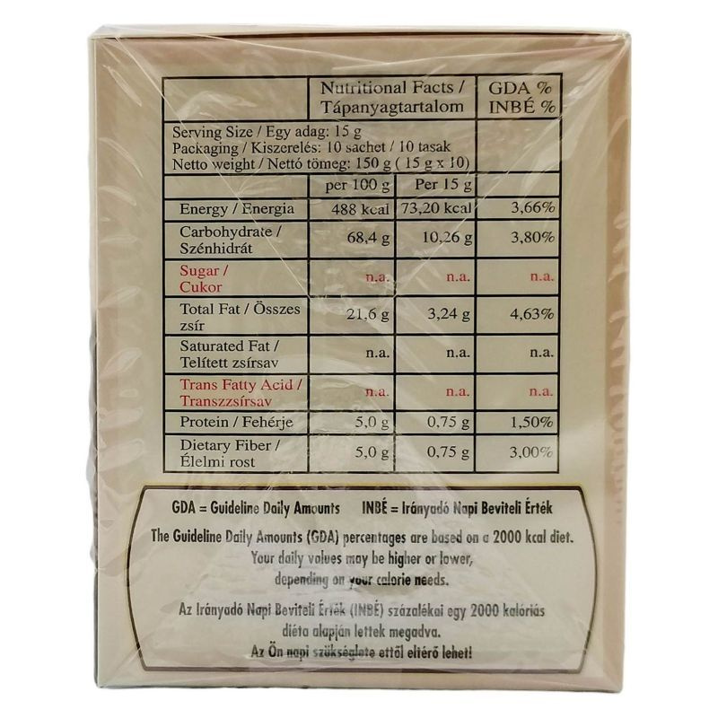 Instant Arabica kávé gyógynövényekkel, Stevia-val édesítve és pálma tejport tartalmaz.