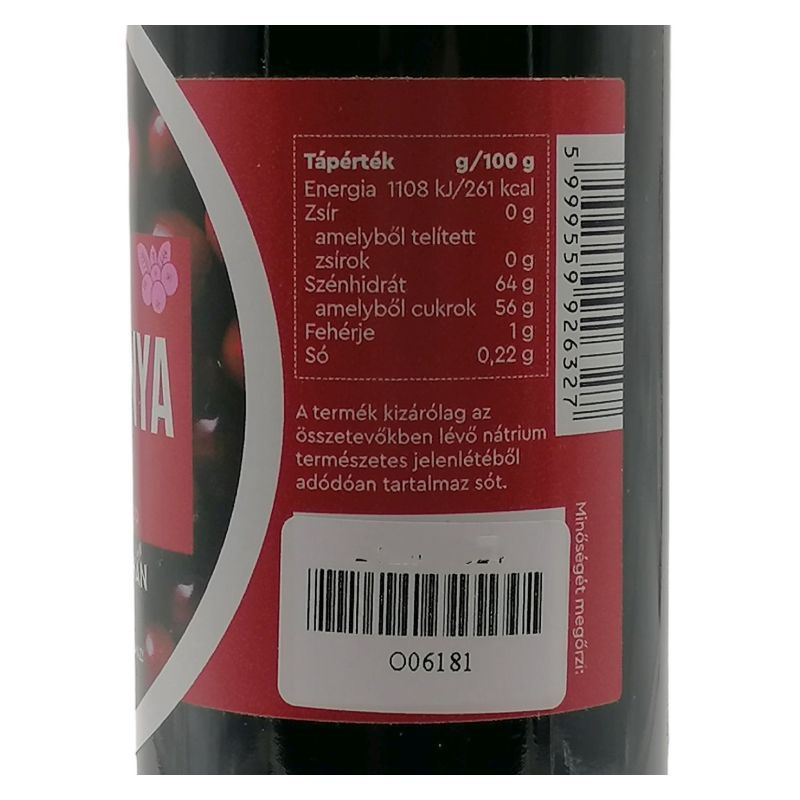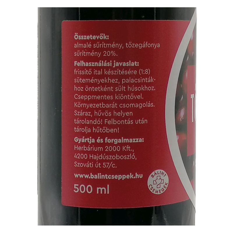 Összetevők: almalé sűrítmény, tőzegáfonya sűrítmény 20%.