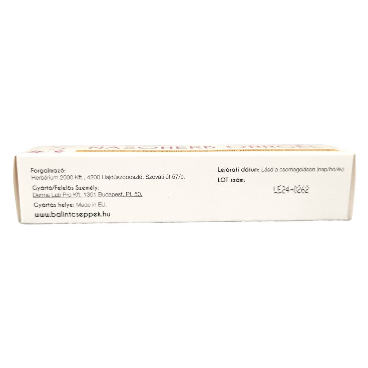A Nasopherb orrgél egy speciális, vízbázisú kozmetikum, amely növényi olajokat, gyógynövény-kivonatokat, valamint A- és E-vitamint tartalmaz. Fő összetevői között szerepel a homoktövis-, feketeköménymag- és szőlőmagolaj, továbbá az egyedülálló bodorrózsa őstinktúra és körömvirág kivonat. Ezek a komponensek hozzájárulnak az orr nyálkahártyájának ápolásához és regenerálódásához, különösen megfázásos vagy allergiás tünetek esetén. A termék használata egyszerű: naponta többször ajánlott vékony rétegben az orrszárnyak belső és külső felületére felvinni. Az orrgél kizárólag külsőleges alkalmazásra szolgál, és fontos, hogy gyermekek elől elzárva tartandó, továbbá kerülni kell a szembe és nyílt sebbe jutást. A készítmény nem tartalmaz szintetikus szín- és illatanyagokat, illetve ásványi olaj alapú összetevőket, így különösen kíméletes és bőrbarát választás az orr egészségének megőrzésére. A tárolás során ügyelni kell arra, hogy a gél 10-25 °C között, fénytől és hőtől védve maradjon, valamint a felnyitás után hat hónapon belül felhasználásra kerüljön.