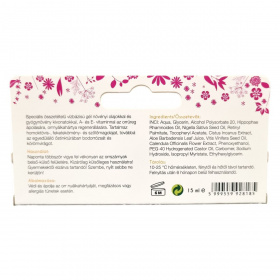 Homoktövis-, feketeköménymag- és szőlőmagolaj, bodorrózsa őstinktúra, körömvirág, A- és E-vitamin.