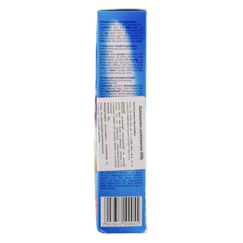 Gluténmentes zsemlemorzsa 500g, amely ideális panírozáshoz, ropogós állagot és tiszta ízt biztosít allergénmentes diétában.