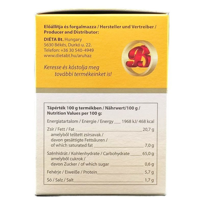 A Barbara gluténmentes sós kréker egy ízletes és ropogós snack, amely tökéletes választás mindazok számára, akik elkerülik a glutént, de nem szeretnének lemondani a finom ízekről. Ez a kréker a kukoricakeményítő és tejföl kombinációjával készül, amely gazdag ízélményt nyújt, miközben könnyedén beilleszthető a különböző diétákba. A margarin hozzáadása pedig egy kellemes, krémes textúrát biztosít, amely még vonzóbbá teszi ezt a sós süteményt. A 150 grammos kiszerelés ideális választás, ha egy gyors harapnivalóra van szükség, vagy ha vendégeket várunk, és szeretnénk valami különlegeset kínálni. A kréker nemcsak gluténmentes, hanem szójamentes is, így széles körben fogyasztható, még azok számára is, akik érzékenyek ezekre az összetevőkre.