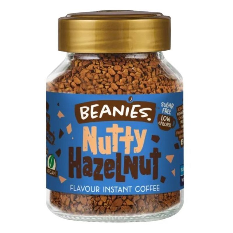 Beanies Nutty Hazelnut Mogyorós ízesített instant kávé Angliából: a prémium minőségű kávét fagyasztva szárítják és különlegesen finom ízeket adnak hozzá, hogy a kávézás minden alkalommal igazi ünnep legyen.