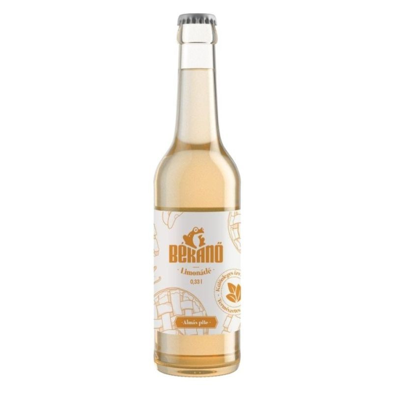 Békanő almás pite ízű szénsavas üdítőital, 5% almalével, fahéjas, karamellé fűszerezéssel, természetes vanília aromával, vegán.