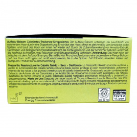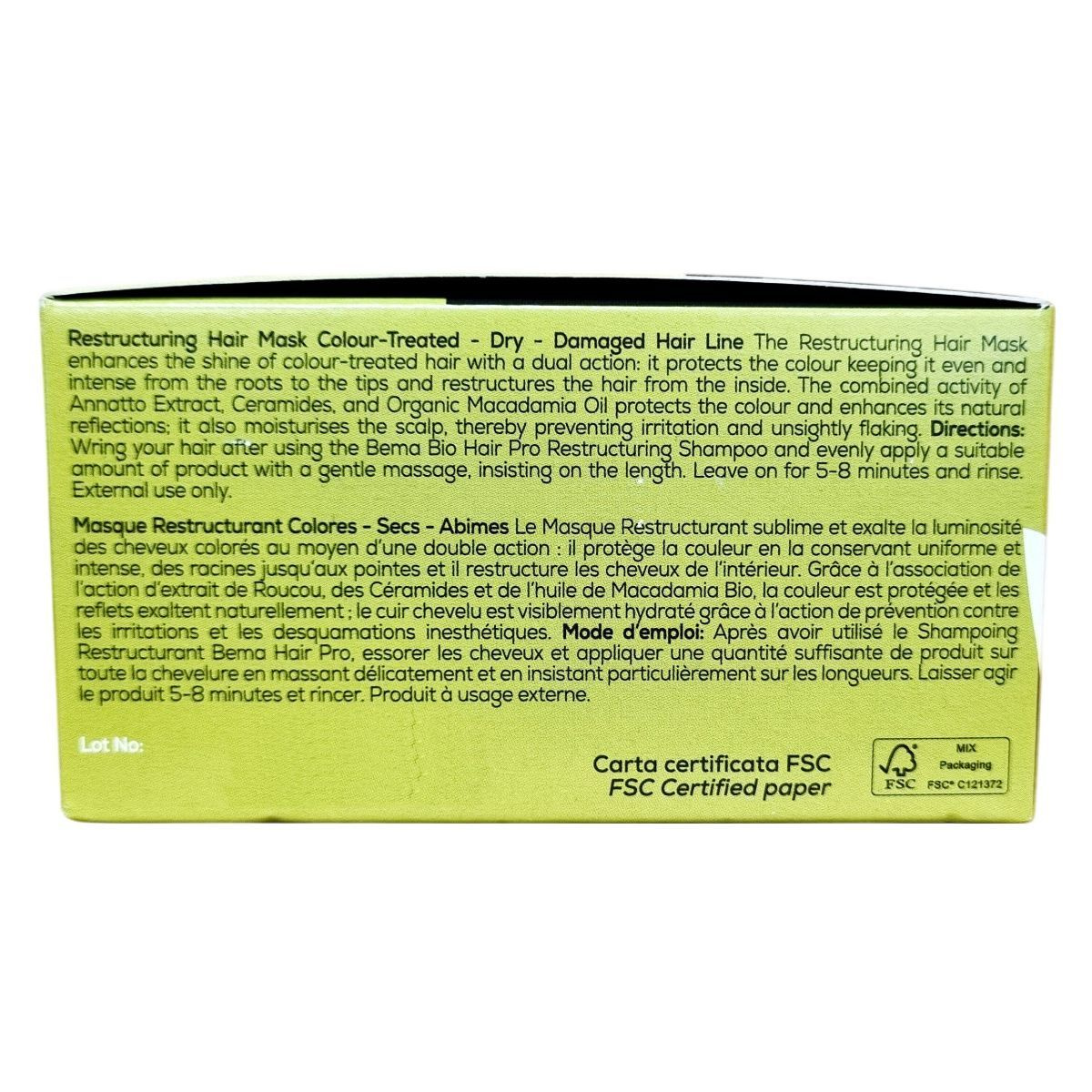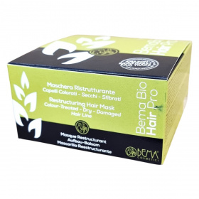A BemaBio Hair Pro Struktúrajavító Hajpakolás kettős hatású formula, amely védi a színezett hajat, megőrizve annak fényét és színének intenzitását egységesen a haj teljes hosszában. Az annatto kivonat, ceramidok és bio makadámiaolaj kombinációja ápolja és hidratálja a fejbőrt, megelőzve az irritációt és a hámlást. A termék 80%-ban bioösszetevőkből készül, természetes eredetű összetevőinek aránya pedig 98,8%. Az energiaellátás megújuló forrásokból származik. Használata után a haj puha, fényes és egészséges megjelenésű lesz, miközben megőrzi a festett haj színének tartósságát és élénkségét.