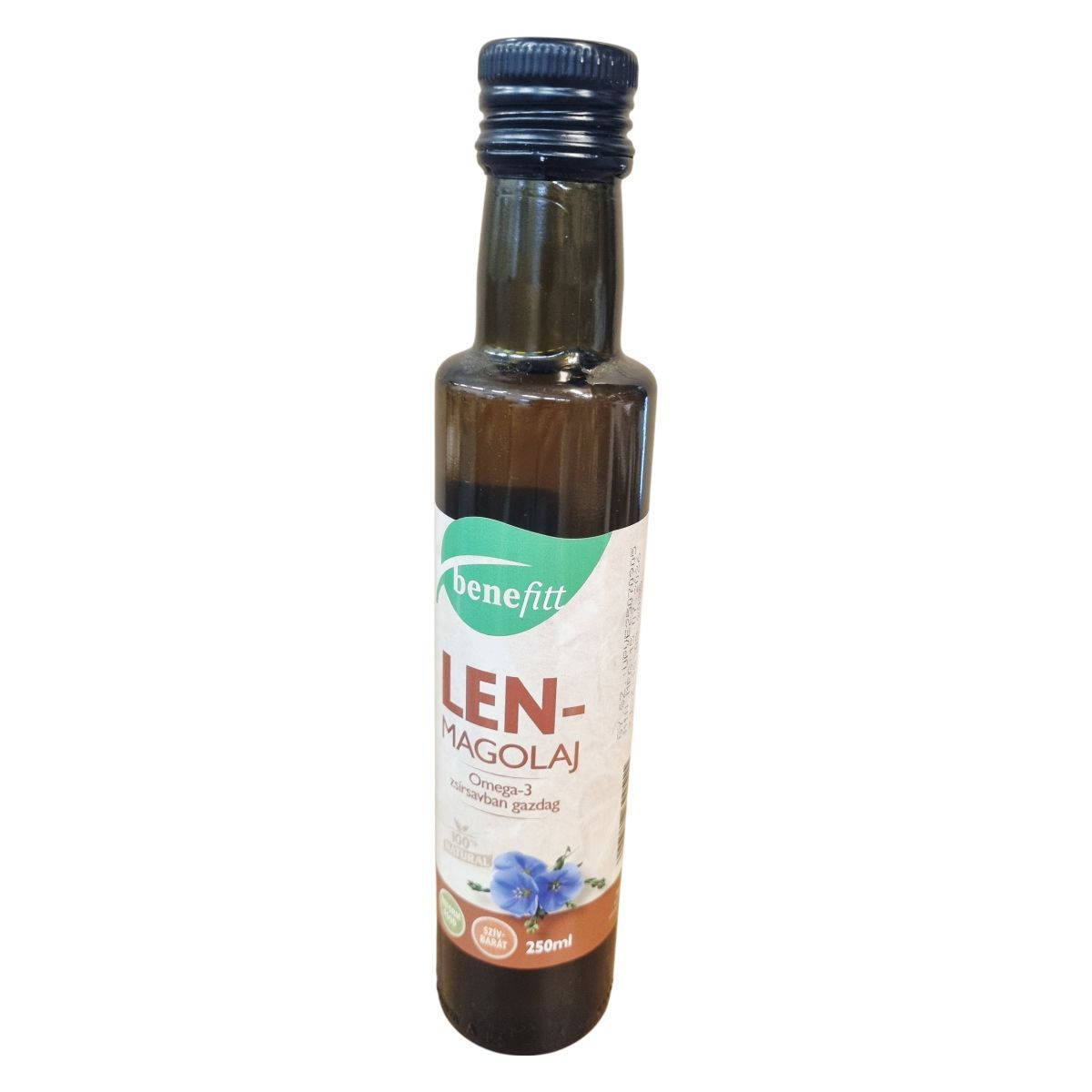 A lenmagolaj hidegen sajtolt olaj, amely megőrzi tápanyagtartalmát. Az omega-3 zsírsavak jótékony hatással vannak a szív- és érrendszerre, segíthetnek a gyulladások csökkentésében, és támogatják az agy egészségét is. A lenmagolaj lignán tartalma antioxidáns hatású, így védheti a sejteket a káros hatásoktól.
