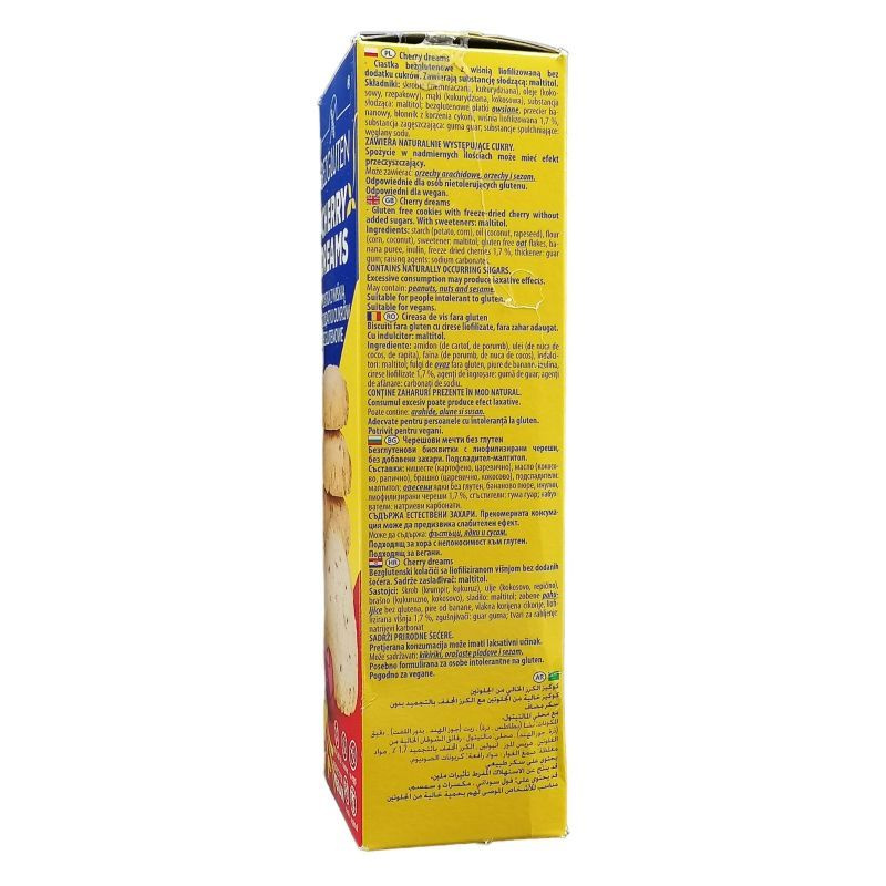 Összetevők: meggy, gluténmentes lisztkeverék, növényi olaj, természetes ízesítők.