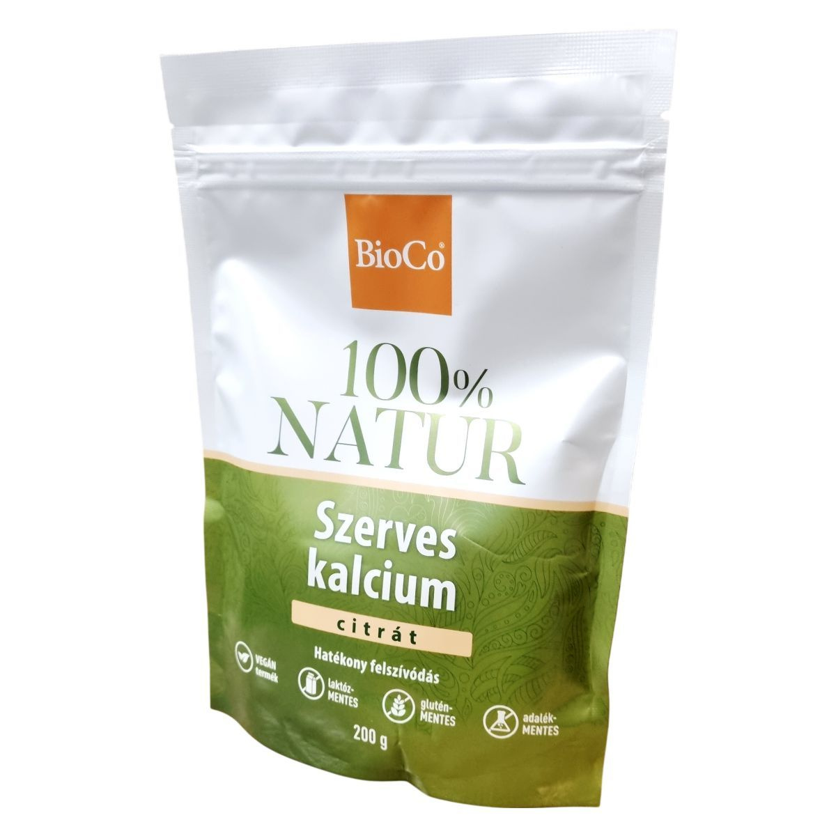 A BioCo 100% NATUR termékcsalád tiszta és természetes összetevőkkel készül, megőrizve az alapanyag eredeti ízét, illatát és színét. Ez a kalcium-citrát étrend-kiegészítő por szerves formában tartalmaz kalciumot, ami fontos lehet a normál csontozat és fogazat fenntartásához, a normál véralvadási folyamatok támogatásához, valamint a normális izomműködéshez. A por vízben kis mértékben oldódik, ezért fogyasztás előtt folyamatos kevergetést igényel. A napi adag kb. 1 vízszintesen csapott teáskanálnyi mennyiség, ami 2700 mg kalcium-citrátnak felel meg. Étkezéstől függetlenül is fogyasztható, és több részletre osztva ajánlott bevenni. A termék mentes mindenféle adalékanyagtól, laktóz- és gluténmentes, valamint vegánok számára is megfelelő választás.