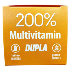 A BioCo 200% Multivitamin DUPLA egy magyar fejlesztésű és gyártású étrend-kiegészítő, mely 23 féle hatóanyagot tartalmaz egyetlen tablettában. A készítmény összetevői között megtalálhatók a fontos vitaminok és ásványi anyagok, melyek közül a legtöbb szerves formában, jól hasznosuló változatban került be a tablettába. A termék támogatni tudja a fáradtság és kifáradás csökkentését, valamint az immunrendszer normál működését. A készítményben kristálytiszta tengervízből származó magnézium is található. A BioCo Magyarország Kft. által gyártott termék megfelel az ISO 22000 szabványnak és a Jó Gyártási Gyakorlat előírásainak, amely garantálja a minőséget és biztonságot. A termék fogyasztása javasolt fokozott vitamin- és ásványianyag-szükséglet esetén, azonban nem helyettesíti a kiegyensúlyozott, változatos étrendet és az egészséges életmódot.