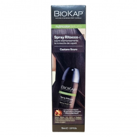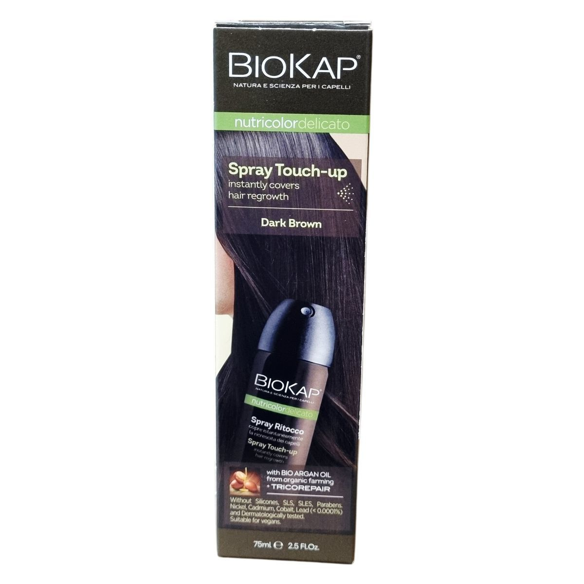 A BIOKAP Nutricolordelicato Spray Touch-up egy sötétbarna hajfesték spray, mely bio argánolajjal és Tricorepair-rel gazdagított, így különösen kíméletes. A spray optimális fedést biztosít a hajtöveken természetes végeredménnyel, mindössze egyperces száradási idővel, és egy mosással könnyen kimosható. A termék mentes szilikonoktól, SLS-től, parabénektől, valamint nehézfémektől és bőrgyógyászatilag tesztelt, így vegánok számára is ideális. Használata egyszerű és biztonságos, azonban fontos betartani a biztonsági előírásokat, mivel a spray aeroszol formátumú és rendkívül gyúlékony. Felbontás után a csomagoláson jelzett időn belül használható fel. A termék környezettudatos, papírdobozban csomagolt és az újrahasznosítási előírásokat figyelembe véve kezelendő.