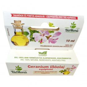 A BioMenü 100% BIO Pelargonium Graveolens virágolaj egy kiváló minőségű, egyiptomi eredetű geranium illóolaj, amely rózsás-mentolos illatával és világossárga-mélysárga-sárgászöld színével tűnik ki. A termék cseppentős pipettás kupakkal van ellátva, ami takarékos és pontos adagolást tesz lehetővé. Az olaj adalékmentes, 100%-ban természetes alapanyagokból készült, és széles körben alkalmazható aromaterápiában, parfümökben, krémekben és testápolókban. Emellett hatékony lehet szorongás, depresszió, fertőzések és fájdalom kezelésére is. Fontos azonban figyelni a használat során, mivel bőrirritációt és allergiás reakciókat okozhat, ezért védőfelszerelés használata ajánlott.