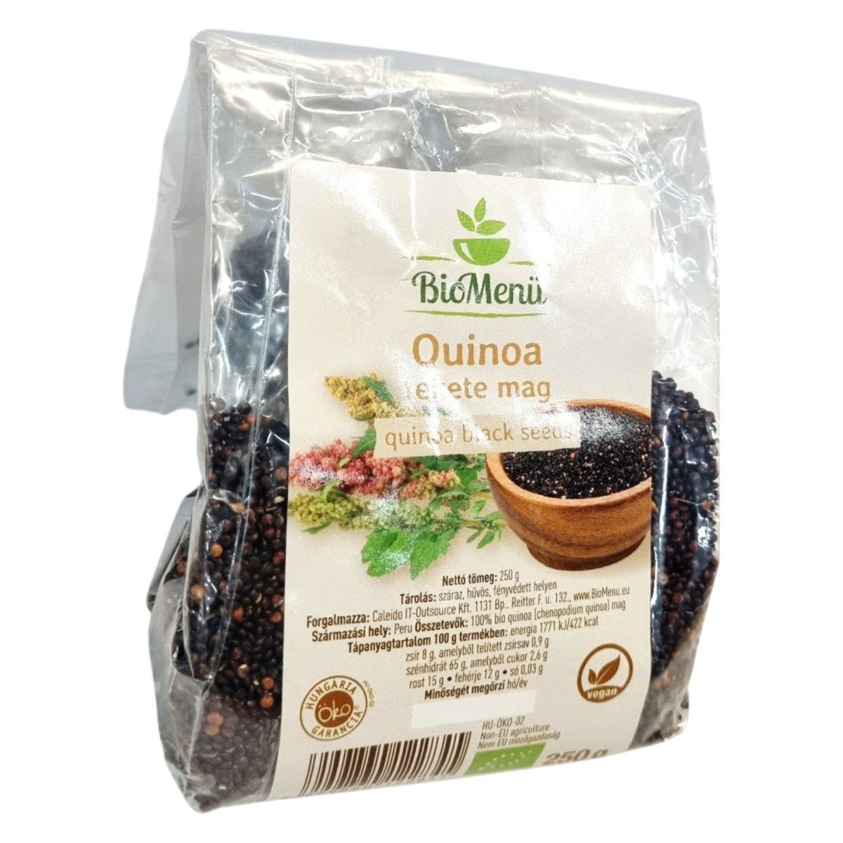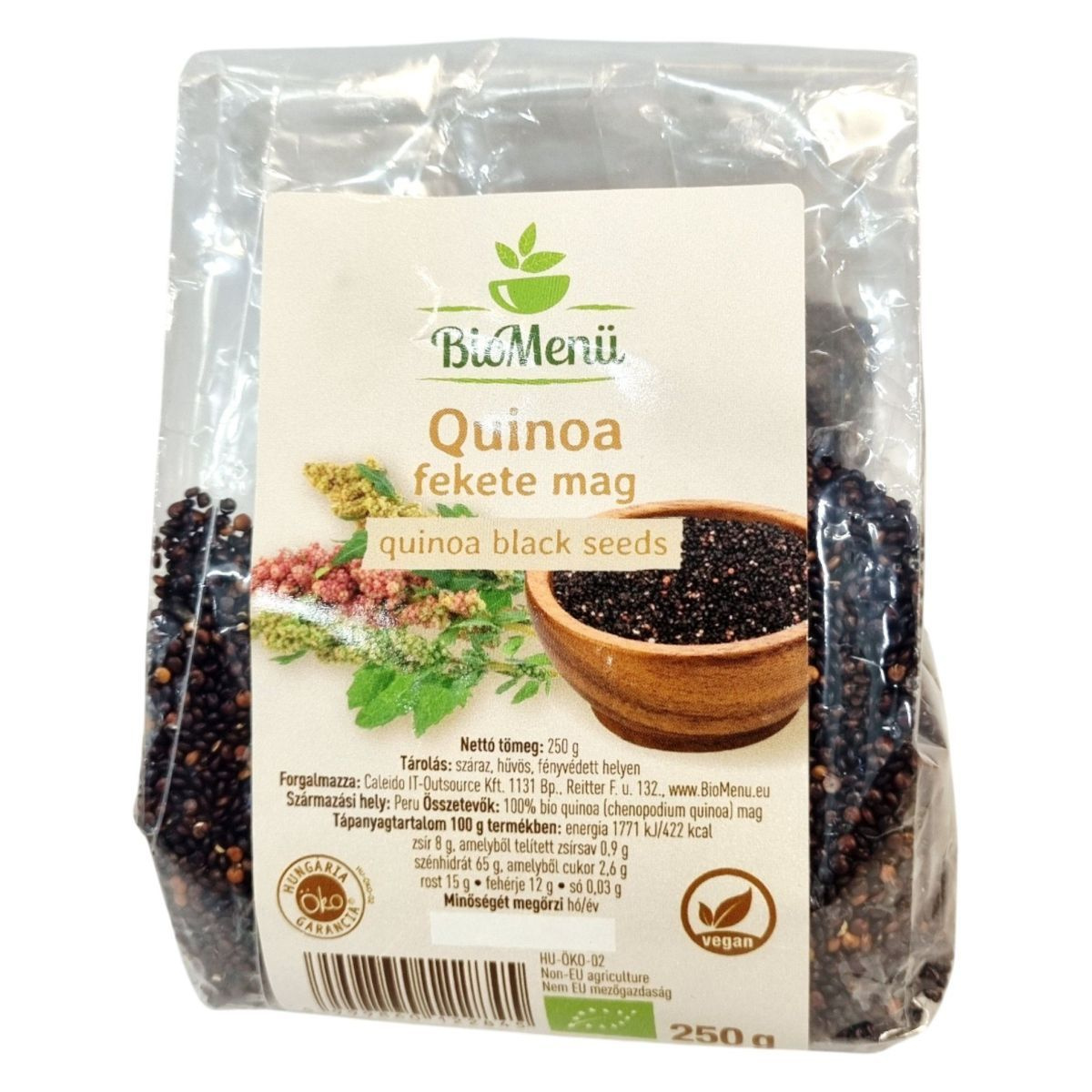 A BioMenü Quinoa fekete mag egy 100% bio termék, amely Peruból származik. Kiváló választás vegán étrendet követők számára, és gazdag tápanyagokban, mint például fehérje és rost.