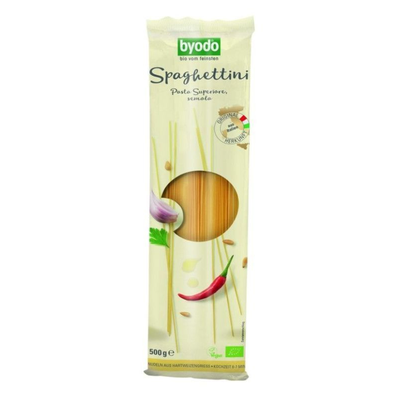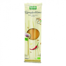 A Byodo Spaghetti, semola a legjobb olasz bio durumbúzából készül, tojás nélkül.