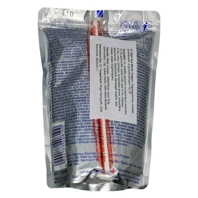 A Capri-Sun mystic dragon vegyes gyümölcsital egy ízletes és frissítő választás, amely tökéletesen illeszkedik a mindennapi élethez. Ez a 200 ml-es alutasakos ital nemcsak praktikus, hanem rendkívül vonzó is, hiszen a szívószálas kialakításának köszönhetően bárhol és bármikor élvezhető. A gyümölcsital különleges ízvilága a gyümölcsök széles választékának köszönhető, amely minden kortyban egy új élményt nyújt. A Capri-Sun mystic dragon vegyes gyümölcsital nemcsak a gyerekek, hanem a felnőttek körében is népszerű, hiszen a gyümölcsök természetes édessége és frissítő hatása mindenki számára vonzó. Az ital alacsony kalóriatartalmának köszönhetően remek alternatíva lehet a cukros üdítők helyett, így ideális választás lehet a tudatos táplálkozás híveinek is. A Capri-Sun mystic dragon vegyes gyümölcsital nemcsak ízletes, hanem praktikus is, hiszen könnyen magunkkal vihetjük kirándulásokra, iskolába vagy akár a munkahelyünkre is. A szívószálas csomagolás megkönnyíti a fogyasztást, így bármikor élvezhetjük a gyümölcsök friss ízét.