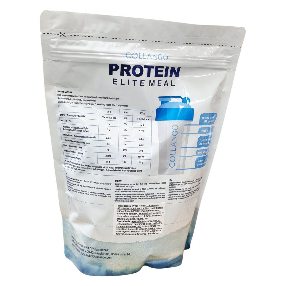 A Collango Elite Meal Protein magas fehérje- és rost tartalommal rendelkező készítmény, ami adagonként mindössze 120 kalóriát tartalmaz.
