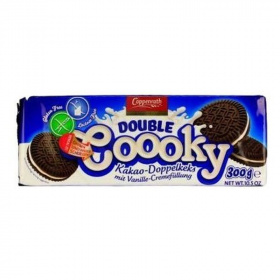 Kakaós keksz vaníliás krémmel töltve. Gluténmentes, laktózmentes termék.
