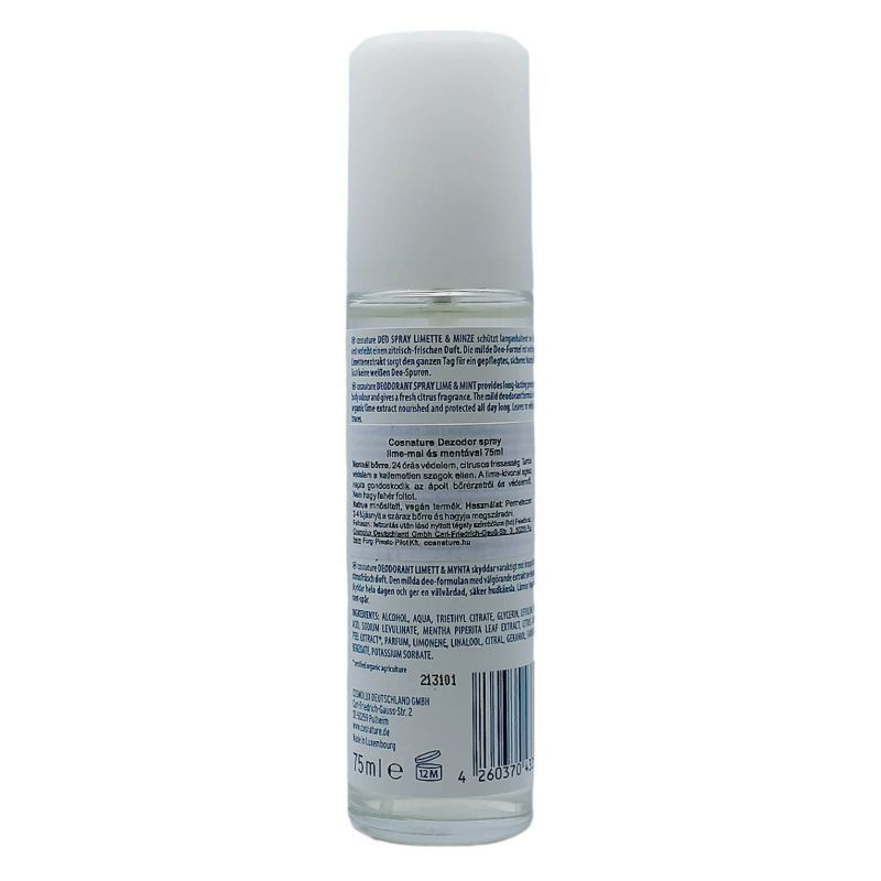 A lime-ot és mentát tartalmazó cosnature® dezodor spray hosszan tartó védelmet kínál a testszag ellen, és optimális ápolás mellett a frissesség érzését nyújtja.