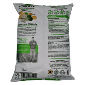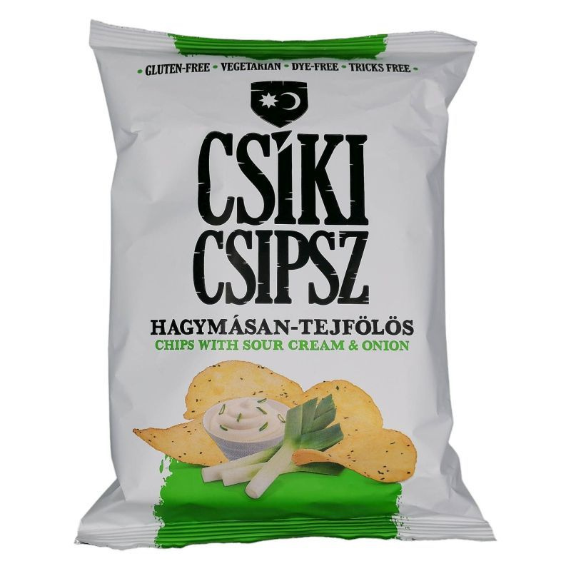 Burgonyából, növényi olajból és tejtartalmú fűszerkeverékből készült hagymás-tejfölös ízű chips.