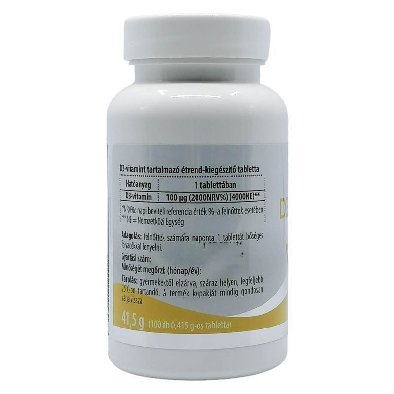 A D3-vitamin (kolekalciferol) egy zsírban oldódó vitamin és prohormon, amely a szervezetben aktív hormonszerű vegyületté alakul. A bőrben UVB-sugárzás hatására képződik, majd a májban és a vesében történő átalakulás után a kalcium- és foszfát-anyagcsere szabályozásában játszik szerepet. Hozzájárulhat a normál csontozat és fogazat fenntartásához, valamint támogathatja az immunrendszer megfelelő működését. Részt vesz a sejtosztódási folyamatok szabályozásában és az izomműködés fenntartásában is. Hiánya csökkent napfény-expozíció vagy elégtelen bevitel esetén alakulhat ki. Megfelelő adagolás mellett biztonságos, ugyanakkor túladagolása hiperkalcémiához vezethet. Egyéni egészségügyi állapot vagy gyógyszerszedés esetén javasolt szakemberrel konzultálni.