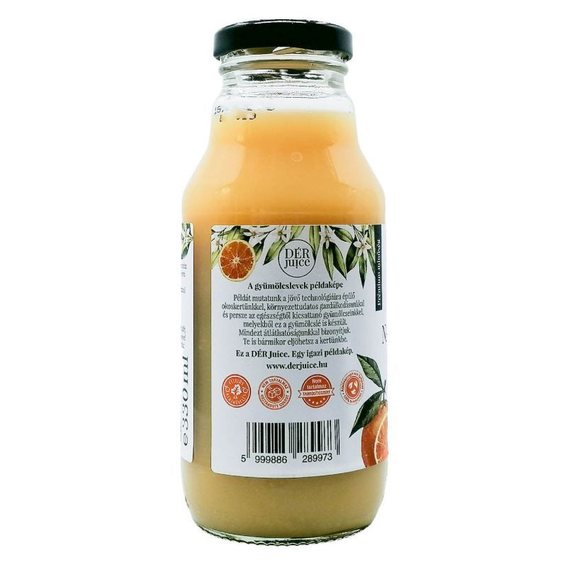 Frissen, hidegen préselt, pasztőrözött, rostos 100% gyümölcslé.