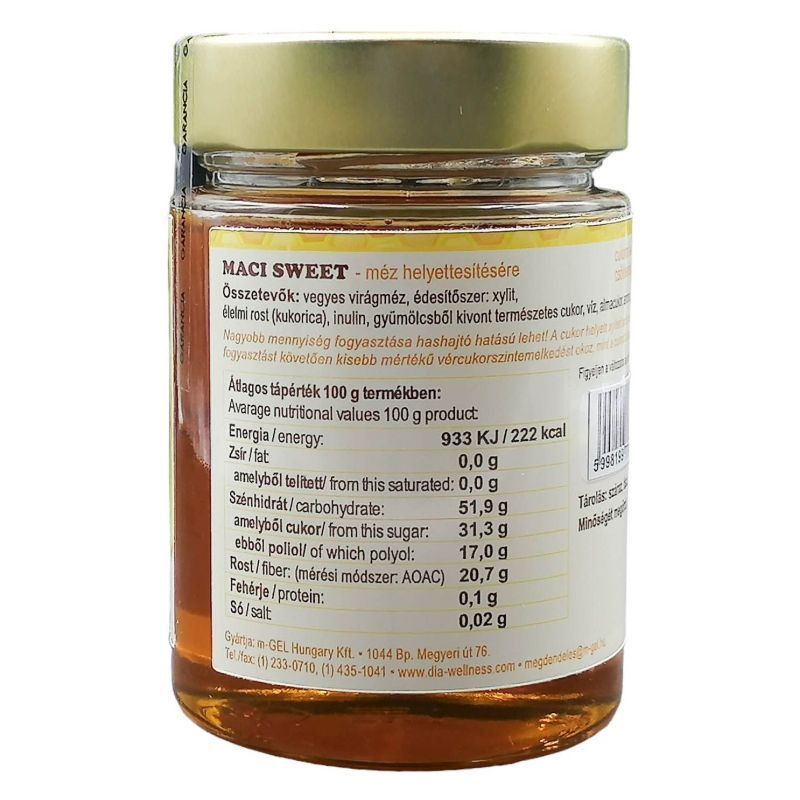 Csökkentett szénhidráttartalom. Természetes alapanyagokból. Kiváló állag és íz. Élelmi rostban gazdag. Prebiotikus rosttal gazdagítva. Összetevők: vegyes virágméz,édesítőszer:xylitol,élelmi rost,gyümölcsből kivont természetes szirup,víz,almacukor,természetes szőlőfruktóz,aroma,szőlőmagkivonat.