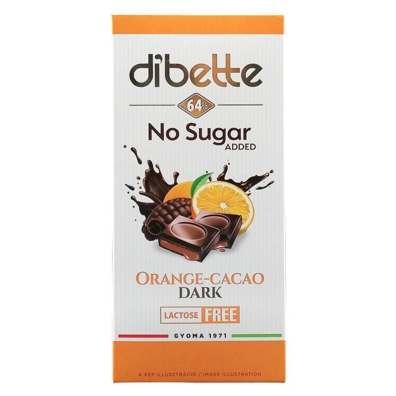 Dibette NAS narancs ízű-kakaós krém töltött étcsokoládé hozzáadott cukor nélkül 80g laktózmentes.