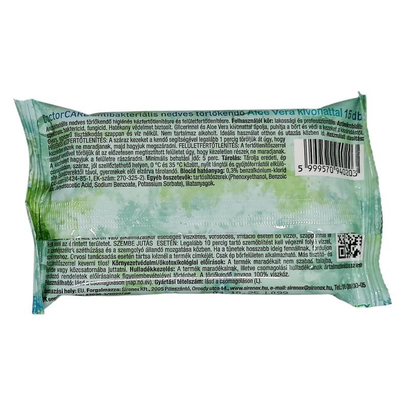 Doctor CARE® antibakteriális nedves törlőkendő Aloe Vera kivonattal 100% biodegradable 15db.