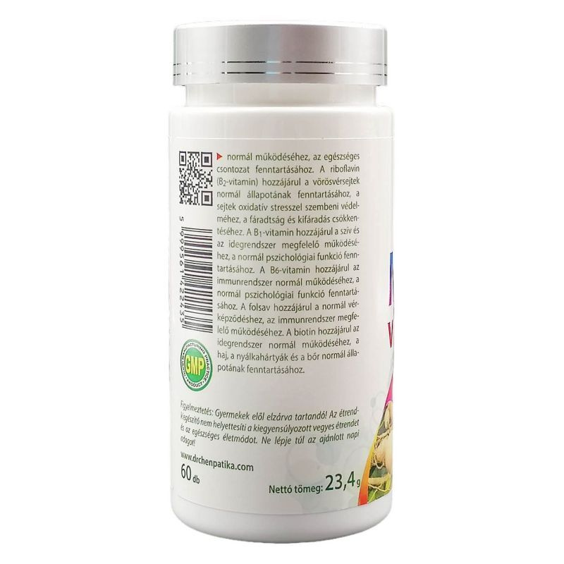 A multivitamin több vitamint és gyakran ásványi anyagot tartalmazó kombinált étrend-kiegészítő készítmény, amely a mikrotápanyag-bevitel kiegészítésére szolgál. Összetételétől függően tartalmazhat vízoldékony vitaminokat (például B-vitaminok, C-vitamin), zsírban oldódó vitaminokat (A-, D-, E-, K-vitamin), valamint nyomelemeket. Biokémiai szinten a vitaminok kofaktorként vesznek részt enzimreakciókban, antioxidáns védelemben és hormonális szabályozásban. A multivitamin alkalmazása olyan élethelyzetekben merülhet fel, amikor az étrend nem biztosít megfelelő mikrotápanyag-ellátottságot. Megfelelő adagolás mellett általában biztonságos, ugyanakkor a zsírban oldódó vitaminok túlzott bevitele kockázatot jelenthet. Egyéni egészségügyi állapot vagy gyógyszerszedés esetén javasolt szakemberrel konzultálni.