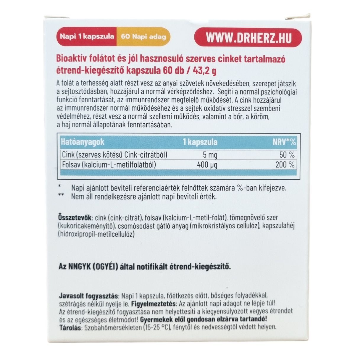 A termék bioaktív folátot és jól hasznosuló szerves cinket tartalmazó étrend-kiegészítő kapszula. A folát a terhesség alatt részt vehet az anyai szövetek növekedésében, szerepet játszhat a sejtosztódásban, valamint hozzájárulhat a normál vérképződéshez. Segítheti a normál pszichológiai funkció fenntartását és az immunrendszer megfelelő működését. A cink hozzájárulhat az immunrendszer normál működéséhez és a sejtek oxidatív stresszel szembeni védelméhez, részt vehet a normál szellemi működés, valamint a bőr, a köröm és a haj normál állapotának fenntartásában.