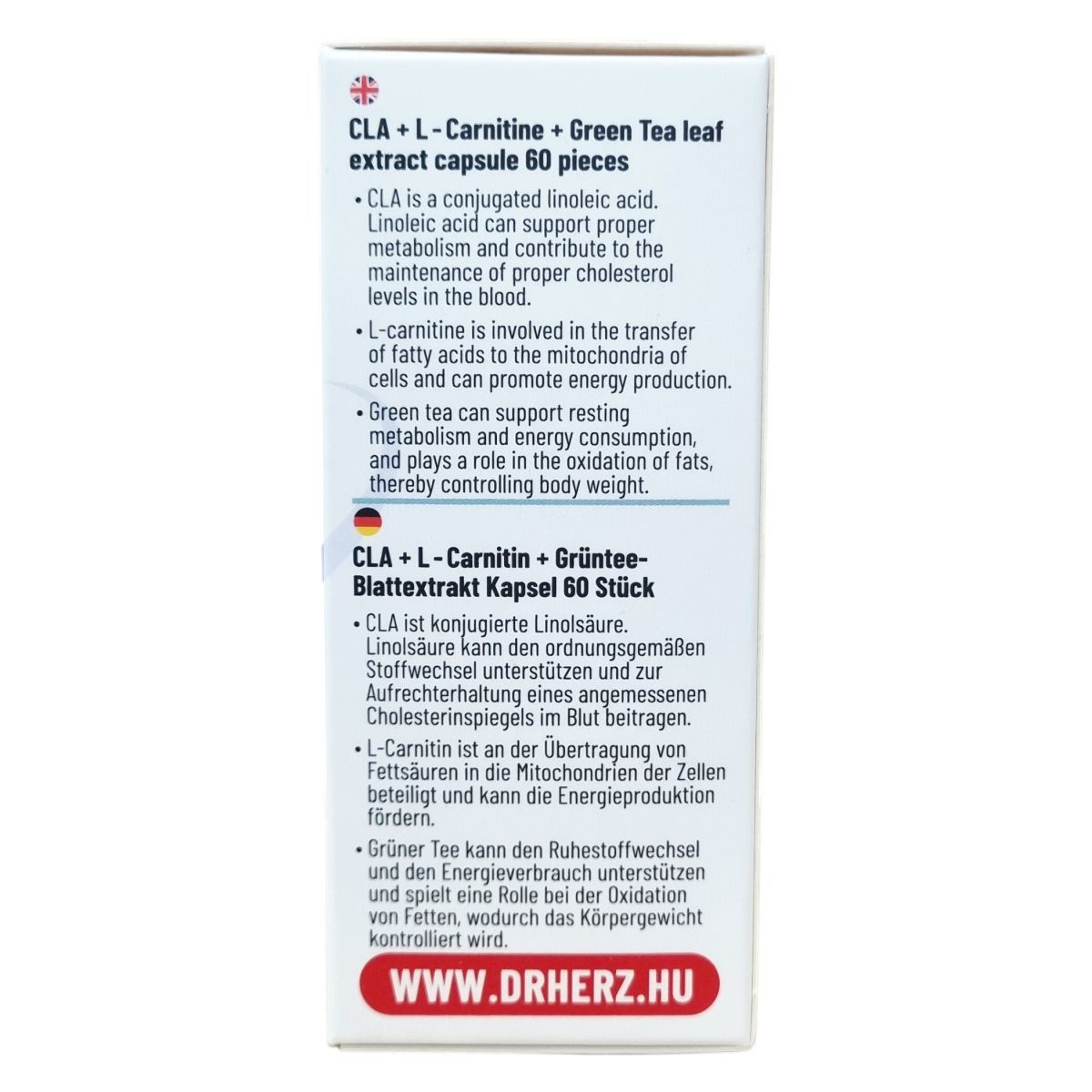 A Dr. Herz CLA + Zöld tea + L-karnitin a három hatékony anyagcsere-fokozó összetevő kombinációja kapszula formában.