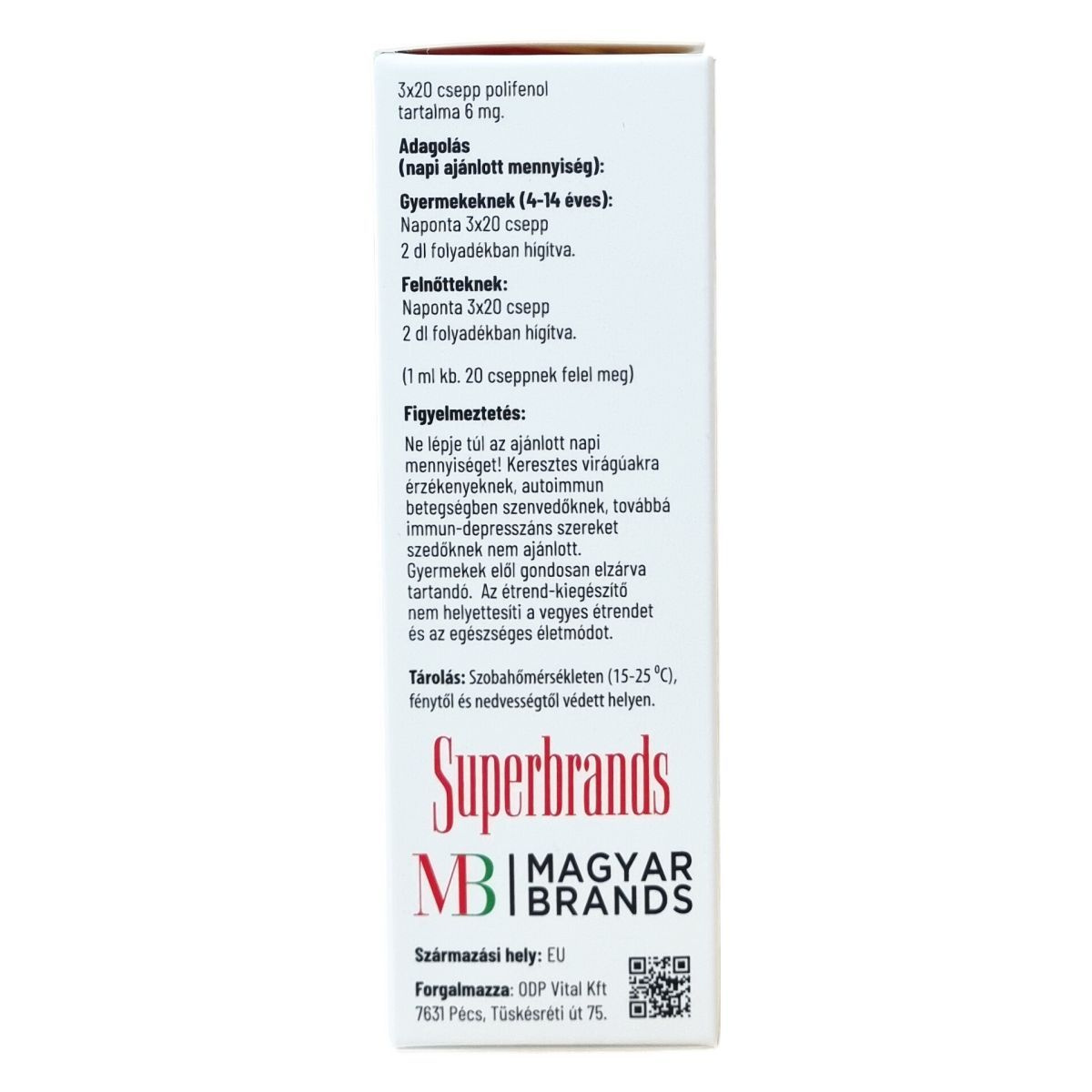 Polifenol: napi 3x20 csepp tartalma 6 mg.
