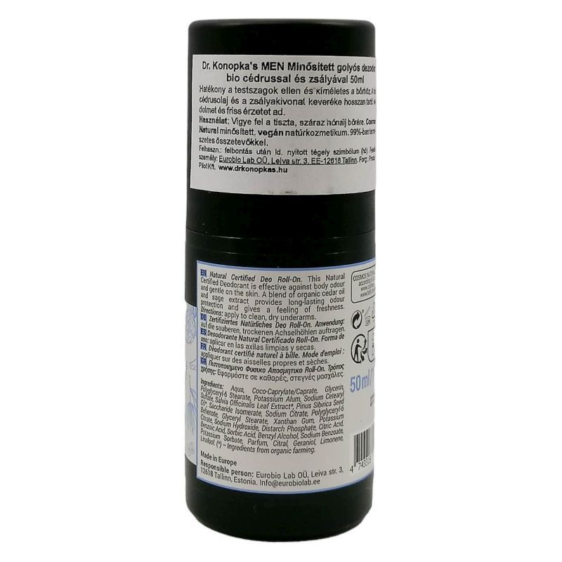 A bio cédrusolaj és a zsályakivonat keveréke hosszan tartó védelmet és friss érzetet ad.