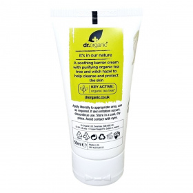 Ez a nyugtató gátkrém bio teafa- és varázsmogyoró-kivonatot tartalmaz, amely segít a bőr tisztításában és védelmében. A termék növényi eredetű összetevőkkel készült, csomagolása újrahasznosított és újrahasznosítható anyagokból áll. A krém vegán, állatkísérlet-mentes és a természet tiszteletével fejlesztették ki, támogatva a bolygó védelmét is.